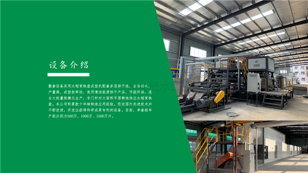 整套設(shè)備采用水稻育秧盤成型機(jī)配套多層烘干線,全自動化、產(chǎn)量高、成型效率快、使用清潔能源烘干產(chǎn)品、節(jié)能環(huán)保。適合大批量規(guī)模化生產(chǎn),專門針對大面積平原耕地供應(yīng)水稻育秧盤。本公司積累數(shù)十年械制造應(yīng)用經(jīng)驗,吸收國外先進(jìn)技術(shù)并不斷改進(jìn),目前,單臺按年產(chǎn)量分別為500萬及1000萬片。